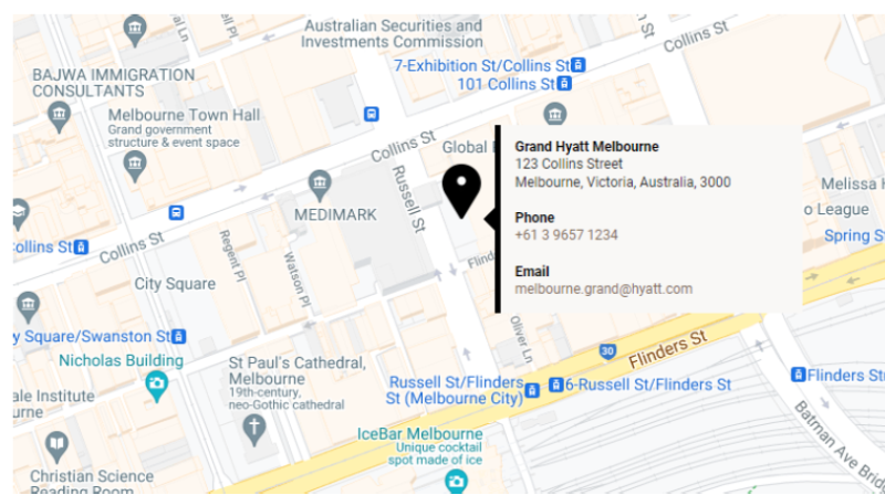 Enter via the Collins Street or Russell Street entrance and head to the main lobby. From there, take the escalator behind the hotel reception desk to reach the conference floor on Level 8. Alternatively, lifts to Level 8 are also available from the lobby.